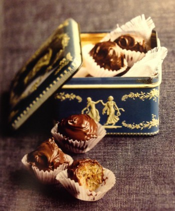 3) Coupez en carrés d'environ 3 cm de côté. Roulez chaque portion entre les paumes de vos mains pour leur donner la forme d'un marron. Posez-les dans le plats et faites à nouveau durcir au réfrigérateur pendant 3 heures.